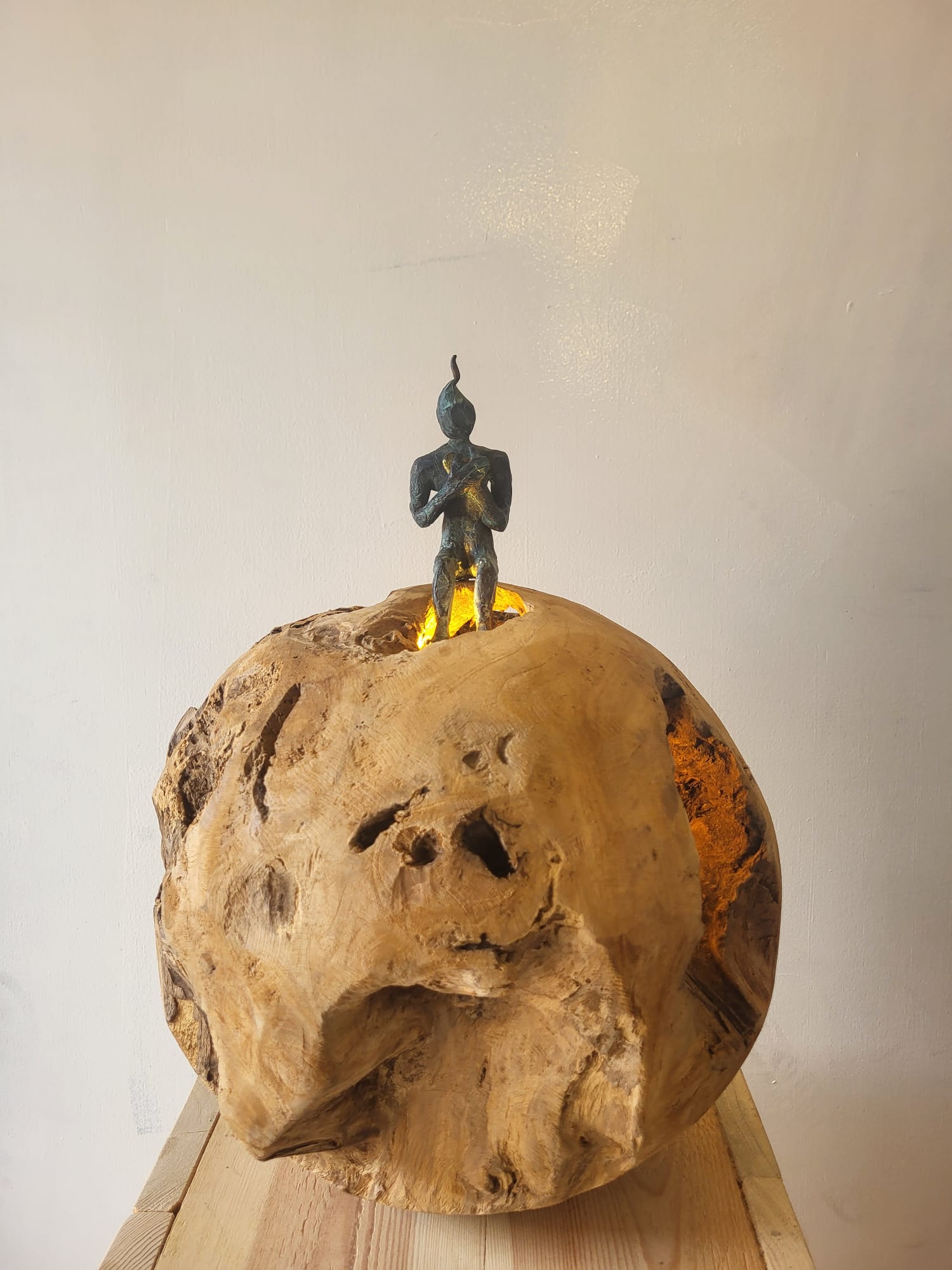 Bronzen beeldjes / prijs op aanvraag / lichtwerkers kunnen ook op aanvraag besteld worden in de gewenste houding. Hoogte standaard 17 cm.